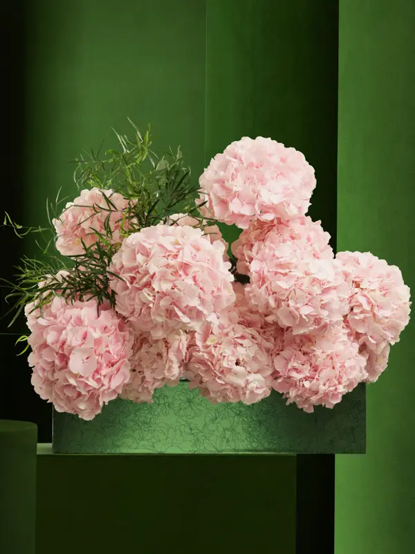 This signature flower box of pink hydrangea together with asparagus from Bliss Flower Boutique is a covetable work of luxury! Add this to your gifting lineup for the next Barbie themed party *If a flower illustrated is unavailable for any reason, we will substitute this for a flower of the same or higher monetary value and in a similar style and colour. Please note as with all natural products there may be slight variances in colour.